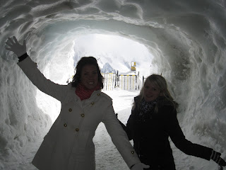 Post lunch, we headed over to the train station to catch an adorably picturesque train over to the glacier. The weather got pretty nasty around this time, so sadly we weren't able to see the glacier as well as we would have liked to. However, did take the stairs down to an ice cave they carved in the glacier. 400 stairs later, we were pretty tired but definitely not too tired to take some silly pictures. Is there such a thing as too tired for that?